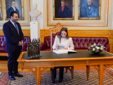 The President of the Storting (Norwegian parliament), Masud Gharahkhani, welcomed the Princess when she arrived at the national assembly building this morning. The President of the Storting explained the proceedings in the Storting and spoke about the history of the building.