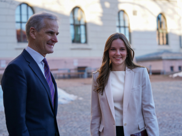 Prime Minister Jonas Gahr Støre and Secretary to the Government Anne Nafstad Lyftingsmo welcomed the Princess to the Office of the Prime Minister this afternoon. The Princess and the Prime Minister then had a private conversation in the office – like the one Crown Prince Haakon had when he visited then Prime Minister Gro Harlem Brundtland.