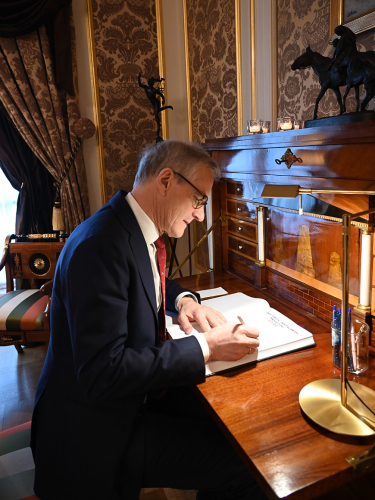 His Royal Highness The Crown Prince was in attendance as usual. The King and the Crown Prince entered the Council Chamber at the Royal Palace and, as is customary, greeted the members of the Government before the meeting commenced. The Princess accompanied her grandfather and father into the chamber.