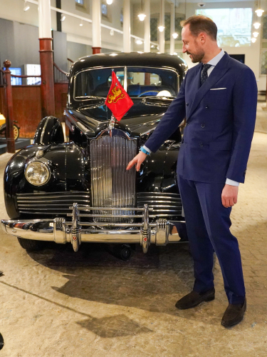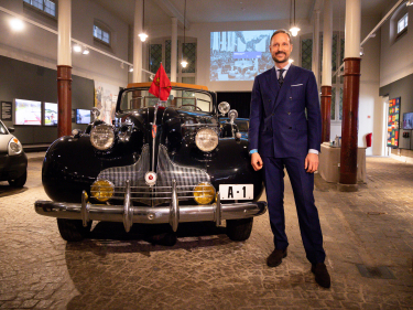 “This is probably the first car our family ever owned – in Norway,” said Crown Prince Haakon, pointing to a yellow Baby Cadillac from 1912.
