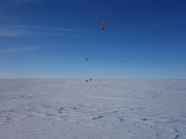 Snowkiters can cover large distances in a single day if the wind is right, the terrain is flat and the snow conditions are ideal. Photo: Markus Landrø, UiT