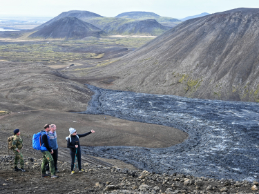 After an hour and a half in rough terrain, the hiking group reached the top, with a good view of the volcano itself. Kristín Jónssdóttir, a seismologist employed by the Icelandic Meteorological Office, was the guide.