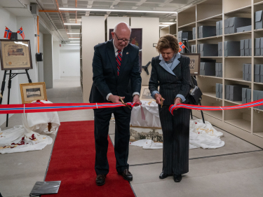 President Anderson and Queen Sonja mark the opening of the new special collections vault. Photo: Simen Sund, The Royal Court