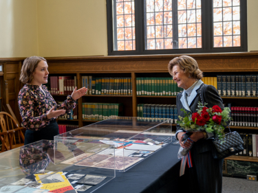 Queen Sonja visited St. Olaf College to mark the opening of its new special collections vault. The vault is specially designed to preserve historical documentary materials in a safe manner and will be fully completed later in the autumn.