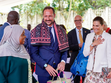 Today, Crown Prince Haakon and Crown Princess Victoria visited Kwale County in the far south of the country. They were welcomed by Governor Fatuma Achani, the first woman country governor in Kwale County, and one of seven women county governors throughout Kenya.