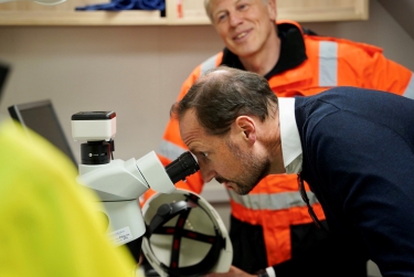 The Crown Prince observes how the Institute of Marine Research is working to address the challenges of microplastics in the sea. Photo: Tuva Åserud / NTB