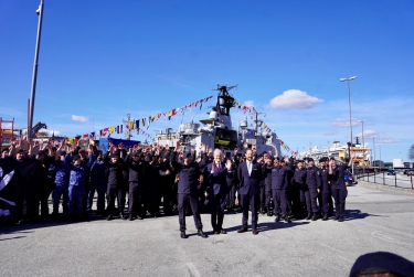 The Crown Prince and Prime Minister Jonas Gahr Støre aboard the sailing ship Statsraad Lehmkuhl. Photo: Sven Gj. Gjeruldsen, The Royal Court