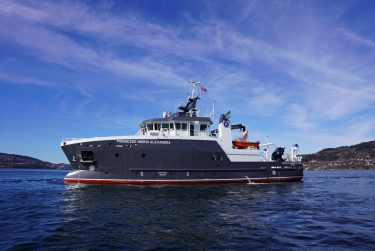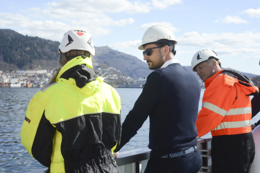 The Crown Prince concluded his day in Bergen with a short scientific voyage on the local fjord, Byfjorden, aboard the research vessel Prinsesse Ingrid Alexandra. The Crown Prince was welcomed onto the ship, which belongs to the Institute of Marine Research, by Captain Rune Kleppe and researcher Bjørn Einar Grøsvik.