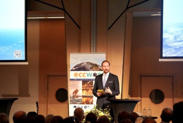 The Crown Prince was welcomed to the symposium by Gunnar Kvamstø, CEO of the Institute of Marine Research, who later introduced the Crown Prince at the podium.