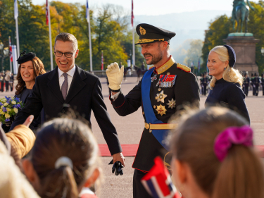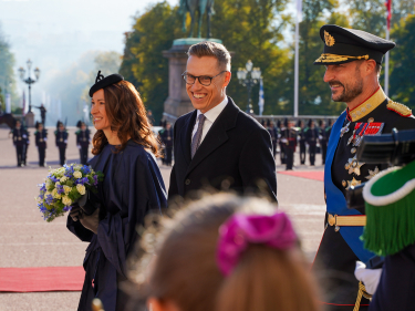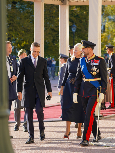 The formal welcoming ceremony began in the Palace Square, where the national anthems of both countries were played, and President Stubb, accompanied by His Royal Highness Crown Prince Haakon, inspected an honor company from the King's Guard.