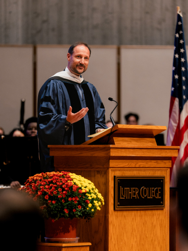 During a formal ceremony, the Crown Prince was awarded an honorary doctorate by Luther College, and in his acceptance speech, he appealed to the students’ responsibility to contribute to the free development of ideas.