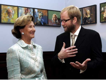 The King and Queen met with President Mary McAleese and her husband, Dr. Martin McAleese. Following a private lunch with the president and her husband, the King and Queen laid a wreath in the Garden of Remembrance. They then met with several Irish public officials, including Taoiseach Bertie Ahern. The Queen attended the opening of an exhibition of Ibsen portraits by Håkon Gullvåg. In the evening President McAleese hosted a banquet for 150 guests at Dublin Castle.