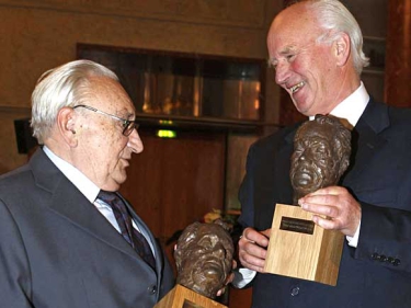 The King and Queen attended the ceremony at which Egon Bahr and Thorvald Stoltenberg were presented with the Willy Brandt Award. The award is granted to persons or institutions that have made an outstanding contribution to the establishment of good ties between Norway and Germany. Recipients are given a statuette of Willy Brandt designed by Norwegian sculptor Nils Aas and a diploma.