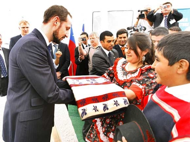 Thursday morning, Crown Prince Haakon laid the foundation stone for the next step of the development, referred to as the La Confluencia project. Many from the local village came to greet the Crown Prince, who was presented with the gift of a poncho made especially for the occasion.