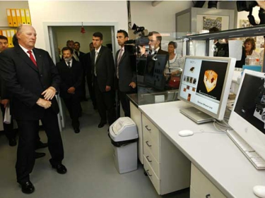 The former director of the Norwegian Radium Hospital, Dr Jan Vincent Johannessen, gave a presentation of the Portuguese-Norwegian collaboration, after which the King toured one of the research laboratories.