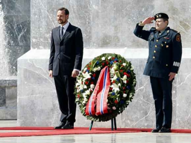 Crown Prince Haakon laid the wreath at the monument during the formal ceremony.