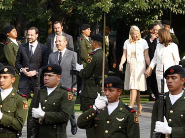 The official welcoming ceremony took place at Los Pinos, the official residence of the President of Mexico, where Crown Prince Haakon and Crown Princess Mette-Marit were received by President Felipe Calderón and his wife Margarita Zavala in a small annex connected to the residence. The Crown Prince and Crown Princess will have meetings with President Calderón and Mrs. Zavala again later in the visit.