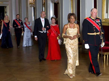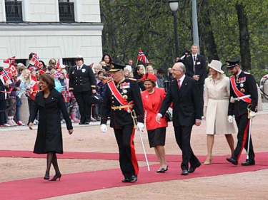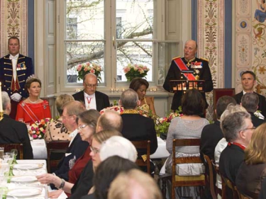 The King and Queen hosted a lunch for the Governor General and her party at 2 pm at the Royal Palace. In the evening a banquet was held at the Royal Palace in honour of the official visitors from Canada. In addition to The King and Queen, other members of the Royal Family in attendance were Crown Prince Haakon, Crown Princess Mette-Marit and Princess Astrid.