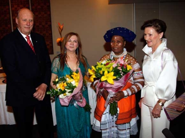 In the evening, King Harald and Queen Sonja attended a cultural event in which the Mari Boine Band performed with South African artists Madosini and the Abaqondisi Brothers.
