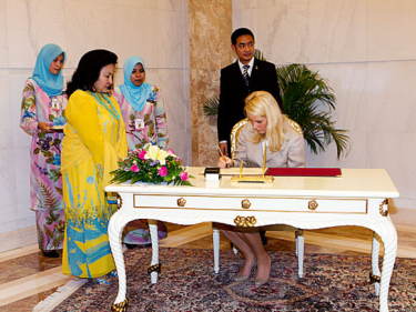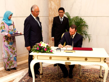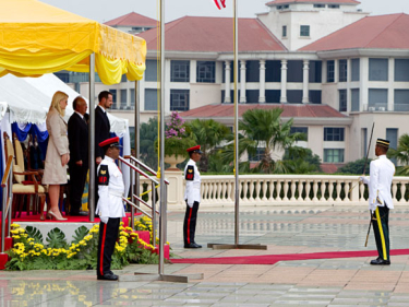 An official greeting ceremony held outside the Perdana Putra Complex south of Kuala Lumpur marked the opening of the visit. The Crown Prince and Crown Princess were formally welcomed by the Prime Minister of Malaysia, Dato’ Sri Mohd Najib bin Tun Abdul Razak, and his wife, Datin Sri Rosmah Mansor.