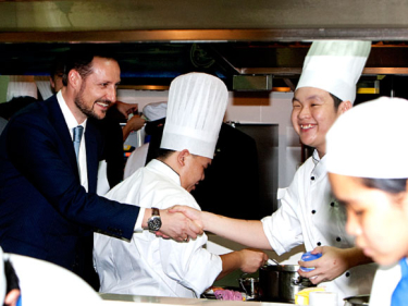 In the afternoon, the Crown Prince attended a cooking competition where students at the Berjaya University College of Hospitality sought to create the best dish featuring Norwegian salmon.