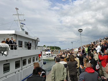 Following a luncheon at a local restaurant, the Crown Prince, the Crown Princess and the Federal Chancellor took a walk along the seaside promenade, where many of the town’s residents and beach guests had come out to greet them. The walking tour ended on the town’s pier which offers spectacular views of the entire bay and the town.