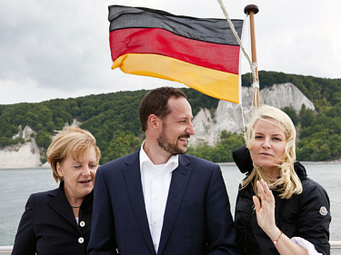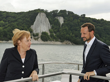 Following a brief walk on the jetty, Crown Prince Haakon, Crown Princess Mette-Marit and Federal Chancellor Merkel boarded the M/S Nordwind, where they had ample opportunity to talk and enjoy the stunning scenery from the ship’s upper deck. The coast of Rügen is renowned for its white chalk cliffs.
