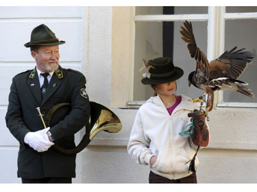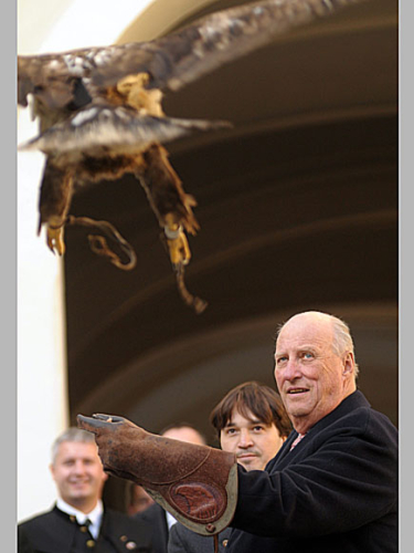 An official luncheon was held at the Svätý Anton Manor House, which also has a hunting museum on the premises. After the luncheon, the King and Queen attended a falconry demonstration with gyrfalcons.