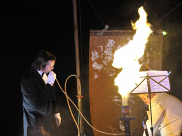 The German theatre company Theater Titanick performed the opening show, a production entitled “Furnace Symphony”, in which industrialisation in the north is symbolised by machines and pipes breathing out music and columns of fire. The furnaces and pipes are transformed by the Titanick orchestra into musical instruments to create a blend of rhythm, flame, machinery and fireworks.