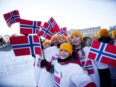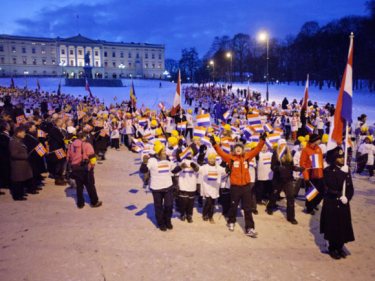 More than 1 700 children from schools across Oslo kicked off the evening’s festivities. Led by His Majesty The King’s Guard and carrying the flags of all the participating nations, the children paraded from the Palace Square down Palace Hill to University Square.