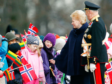 Her Excellency Dalia Grybauskaitė, the President of the Republic of Lithuania, commenced a two-day State Visit in Norway on 5 April 2011. Their Majesties The King and Queen welcomed the President in a formal ceremony on the Palace Square.