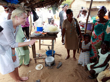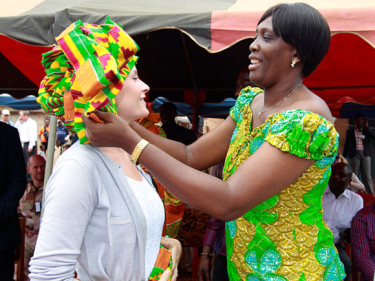 UNICEF is supporting the Ghana Health Service in its efforts to follow up the Government’s High Impact Rapid Delivery strategy for achieving the UN Millennium Development Goals on reducing child and maternal mortality. The Crown Prince and Crown Princess and the Minister met volunteers and nurses who work at the local health clinic in the area. They were shown around the village and saw how the local population sleep outdoors under malaria nets when their houses become too hot. This is an inexpensive and simple way to combat malaria.