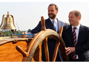 Earlier today, Crown Prince Haakon attended an official luncheon in the Town hall, hosted by Hamburg mayor Olaf Scholz. The day’s programme will be concluded this evening with a dinner based on ingredients from Norway, hosted by Norwegenfestival.