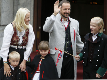 The Royal Family will take its customary place on the Palace Balcony starting at 10:30 am to greet the Oslo children’s parade.