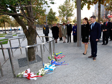 Prior to their visit to MoMA, Their Majesties visited Ground Zero, where terrorist attacks on 11 September 2001 destroyed the World Trade Center.