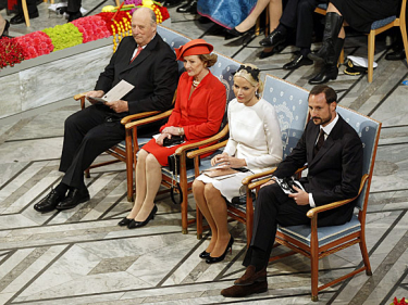 Their Majesties The King and Queen and Their Royal Highnesses The Crown Prince and Crown Princess were in attendance today at the ceremony at Oslo City Hall in which Her Excellency President Ellen Johnson Sirleaf of Liberia and peace activists Leymah Gbowee of Liberia and Tawakkul Karman of Yemen received the Nobel Peace Prize.