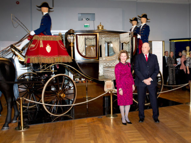 The exhibition showcases equipages, apparel, uniforms, official decorations and gifts given to Norwegian Kings and Queens by foreign heads of state. Among the high points are the gala carriage, elegant gowns and uniforms made for the coronation of King Haakon and Queen Maud in 1906, as well as the apparel used in connection with the consecration of King Olav in 1958 and King Harald and Queen Sonja in 1991.