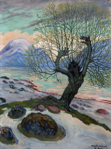 He sought to convey the mystique and magic of nature – and he used strong colours. It has been said that the vibrancy of Astrup’s colours is drawn from the earth itself; from the rain-drenched mountains, moss and lichens, from the waterfalls and mountain glaciers.