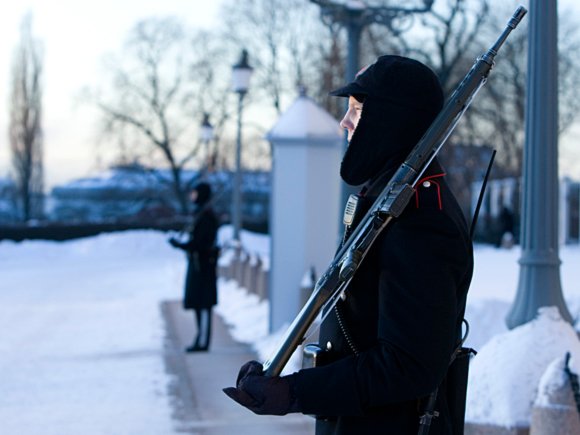 Today the King’s Guard has permanent sentry duty at the Royal Palace, Skaugum Estate, Bygdø Royal Farm when in use, Akershus Fortress and Huseby military camp.