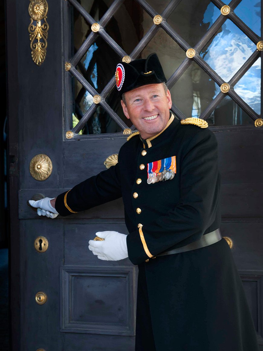 The Guard and Reception section also operates the Palace's switchboard and manages the courier service, which is carried out by the orderlies – guards from His Majesty the King's Guard. Several orderlies are assigned to the section at all times.