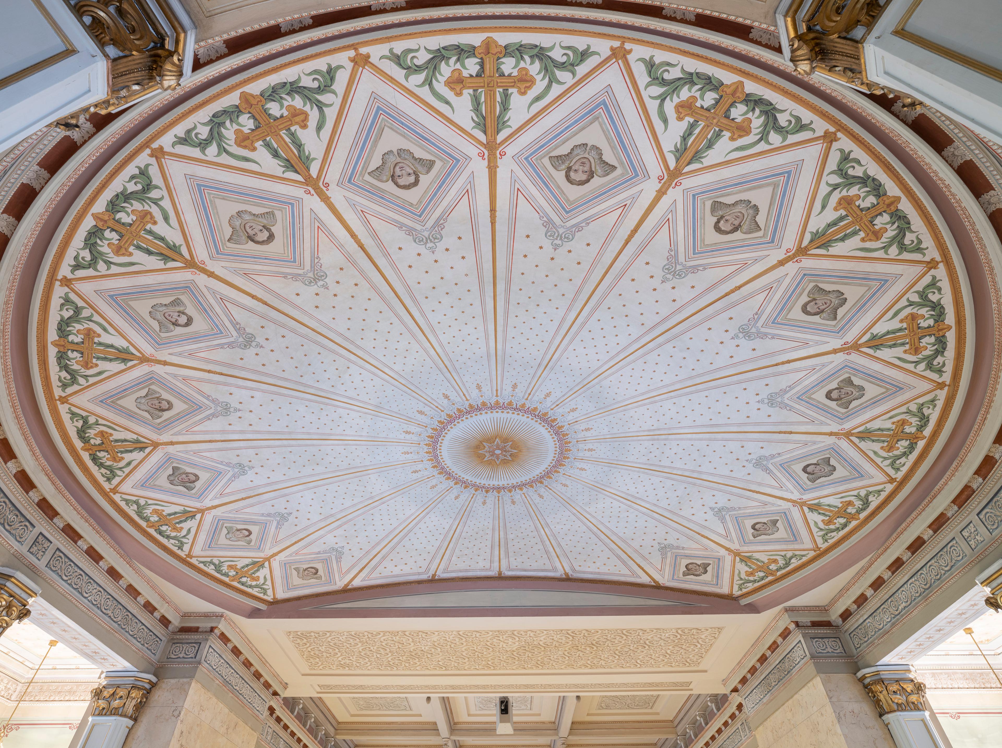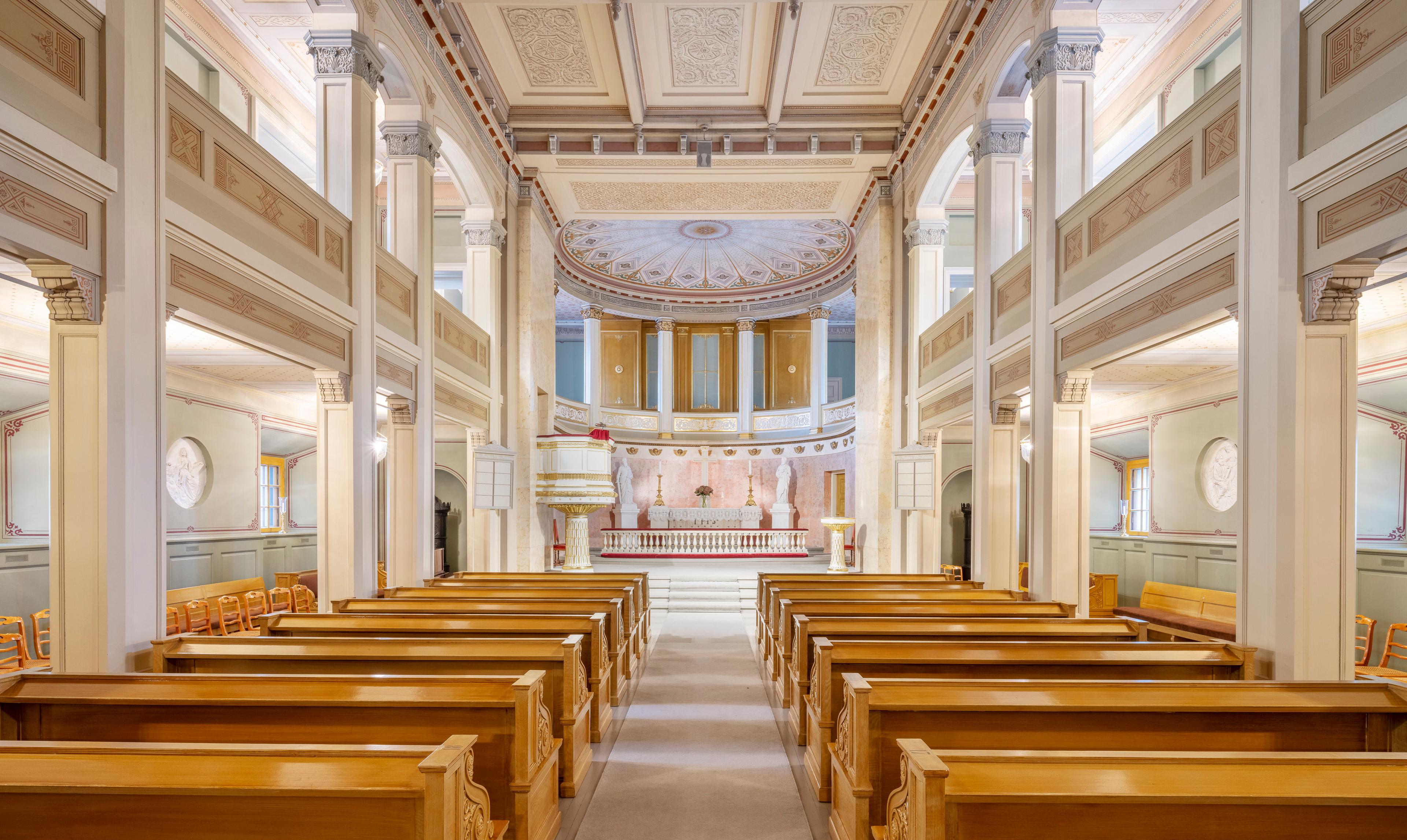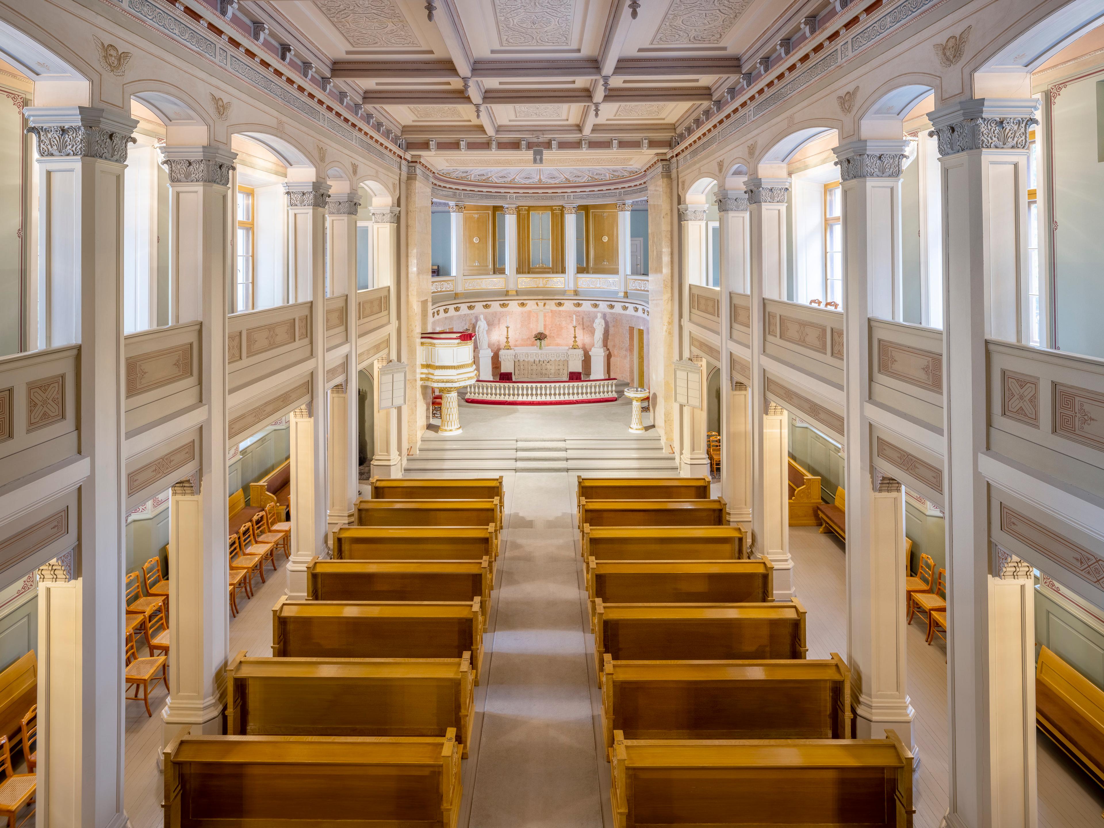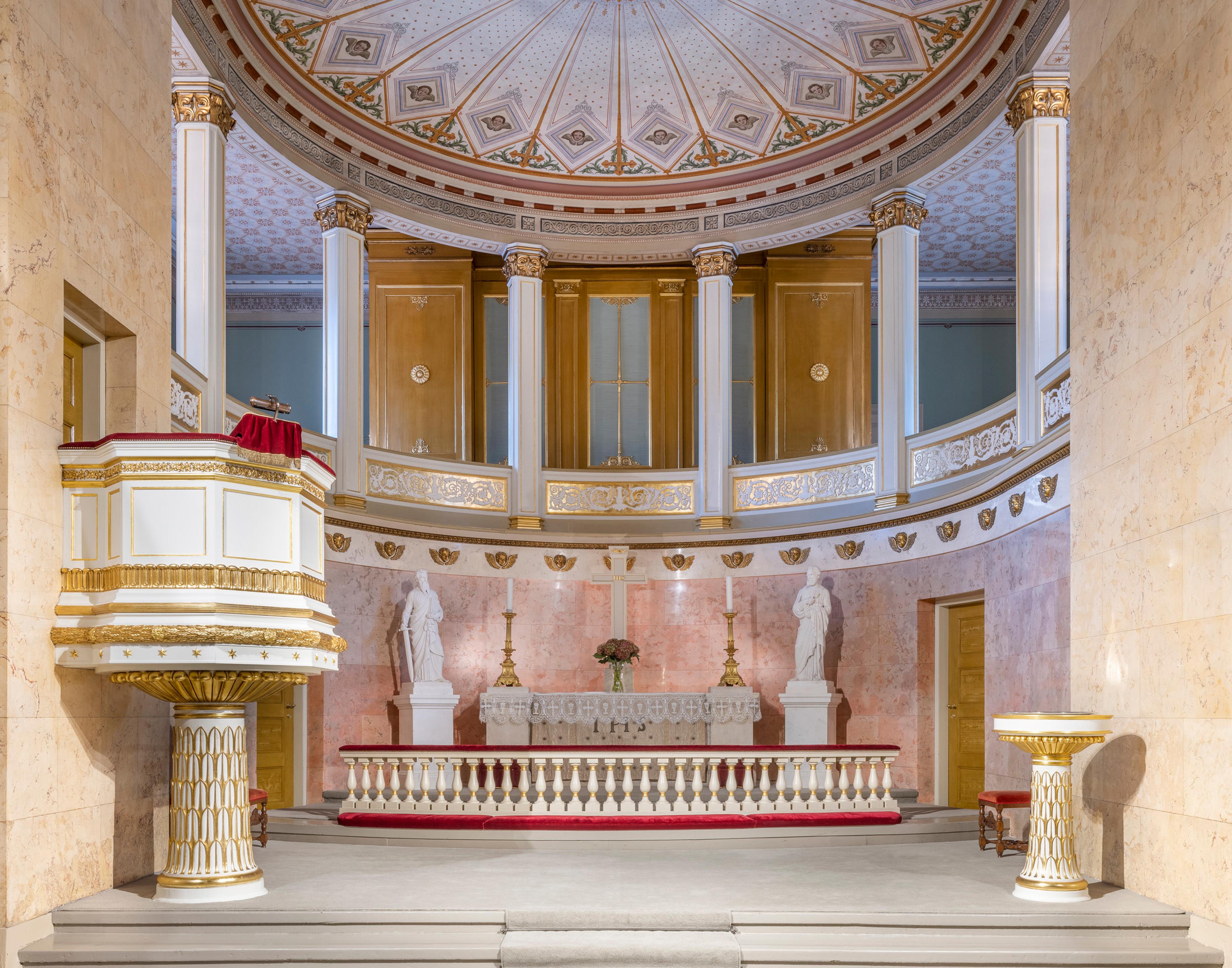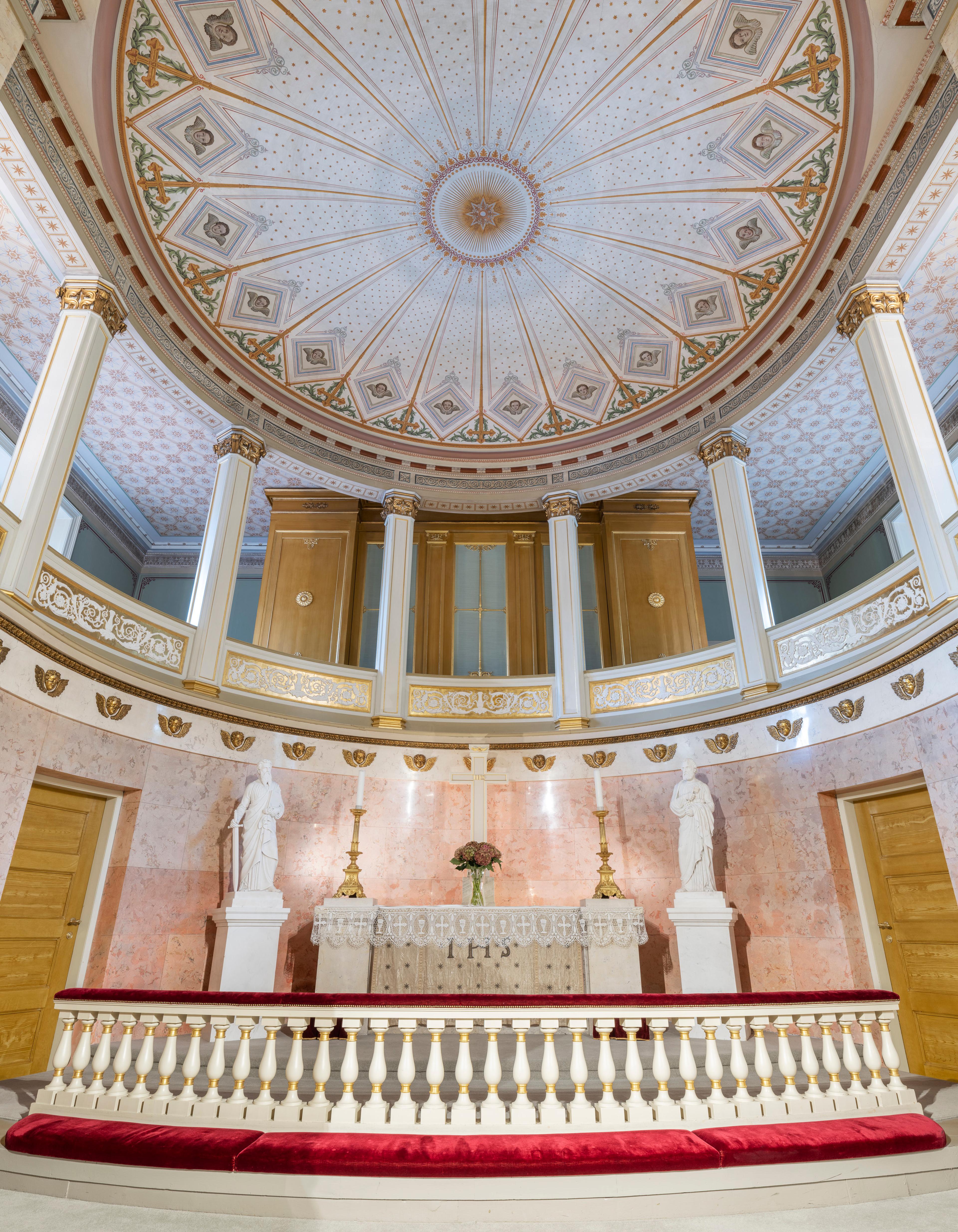 King Carl Johan laid the foundation stone of the Palace during a solemn ceremony on 1 October 1825. The stone was placed beneath what was to become the altar in the Palace Chapel. The fact that the foundation stone was placed here tells us of the important position a palace chapel held as part of a royal residence. The Norwegian royal residences have had their own chapels ever since the Middle Ages, and such chapels can also be found at Stockholm Palace, in Copenhagen, and at other European estates. The chapel is the only room in the Palace that bears King Carl Johan’s monogram.